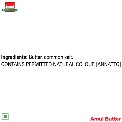 Creamy Amul Pasteurised Butter, a hallmark of perfection in every spread. Crafted from the finest milk, its rich, smooth texture melts effortlessly on warm toast or enriches culinary creations with a luxurious touch. Elevate every meal with the unmistakable taste of Amul, cherished for its unmatched quality and wholesome goodness.